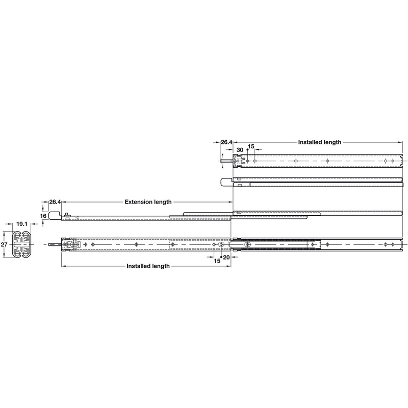 Be the first to review “2731CL BB Drawer Runner Full 24kg 450mm BZP”