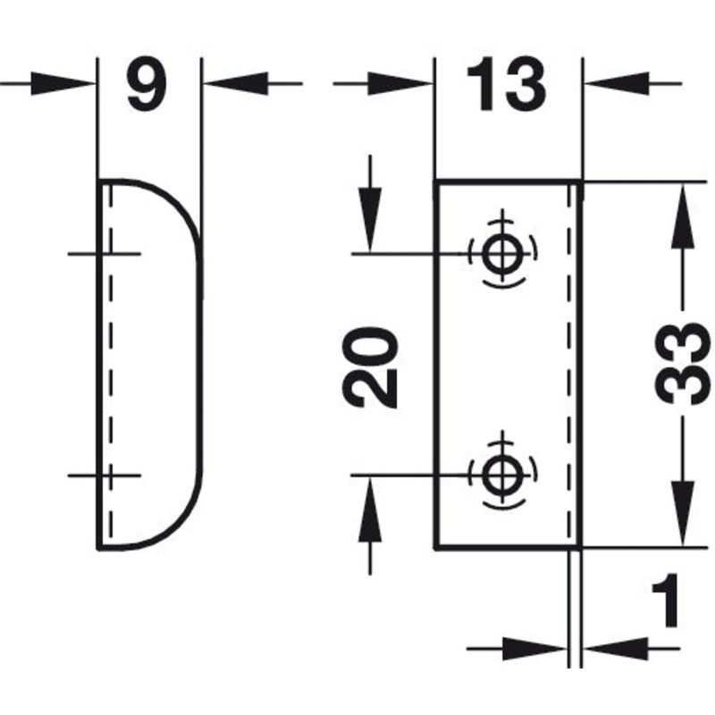 - Striking Plate, for Screw Fixing, 33 x 13 x 9 mm, Steel