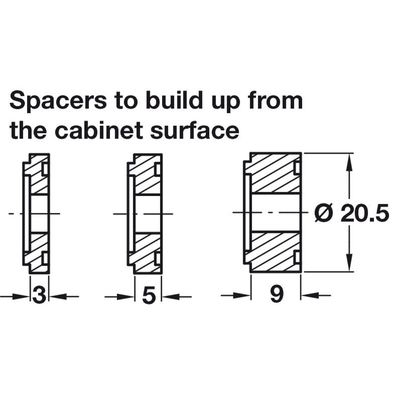 For placement between the profiles and cabinet side panelsFor various installation widths or to compensate for door overhang