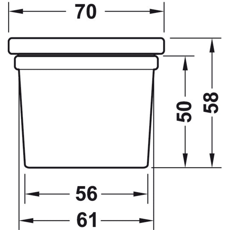 - Height: With lid: 58 mm, without lid: 50 mm